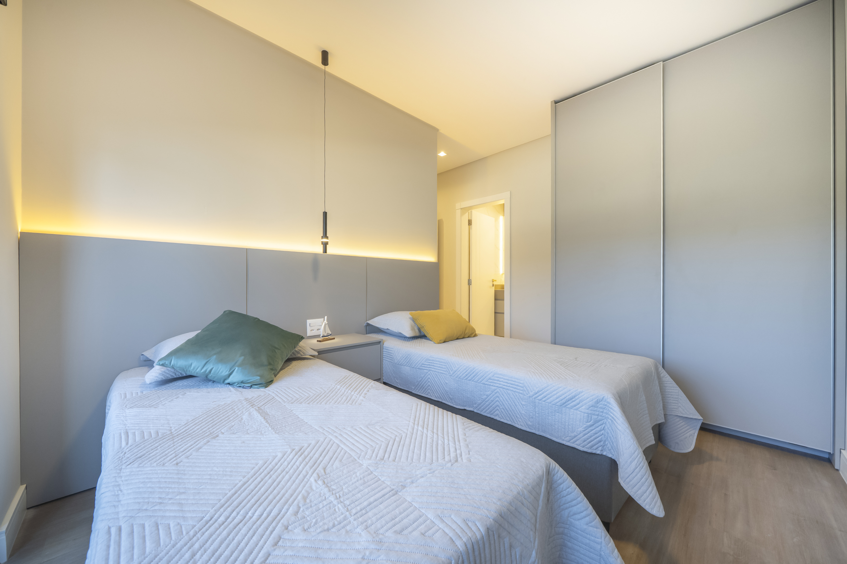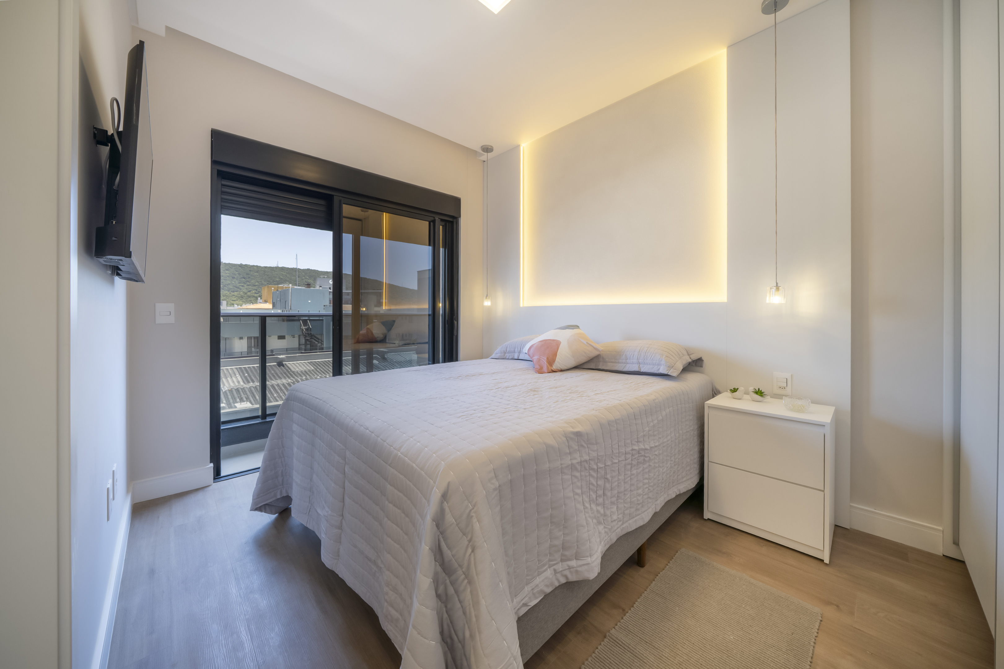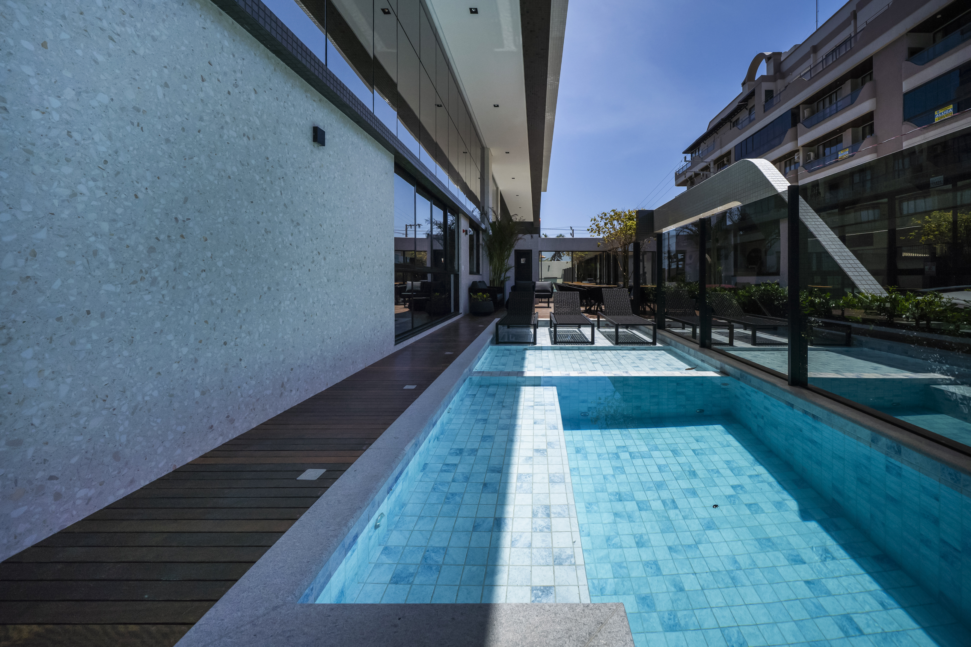 Descrição: Apartamento de três suÃtes no 5° piso em condomÃnio com piscina a 70 metros da praia de Bombas. |