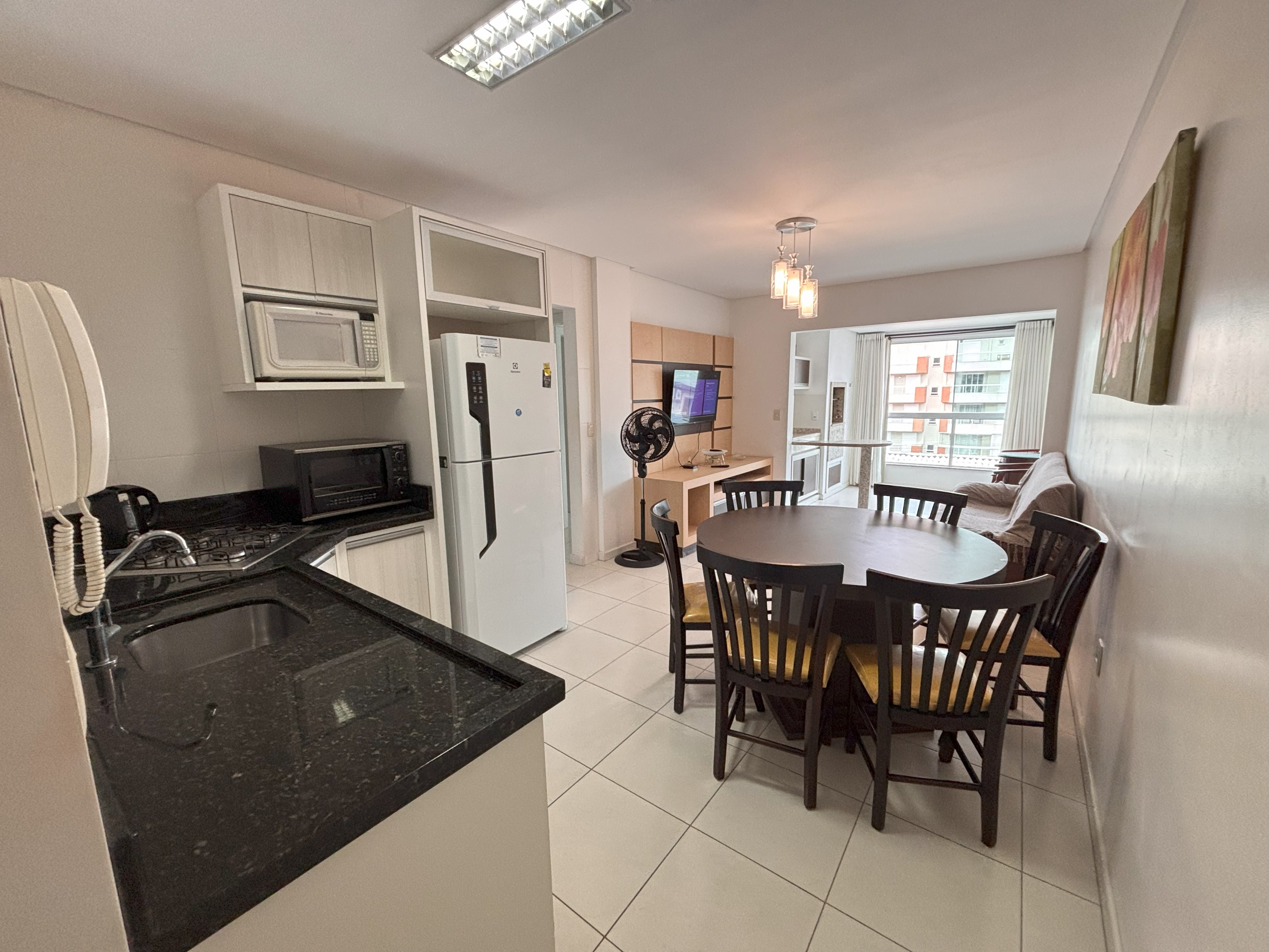 Cozinha equipada com micro-ondas, geladeira e demais utensílios;