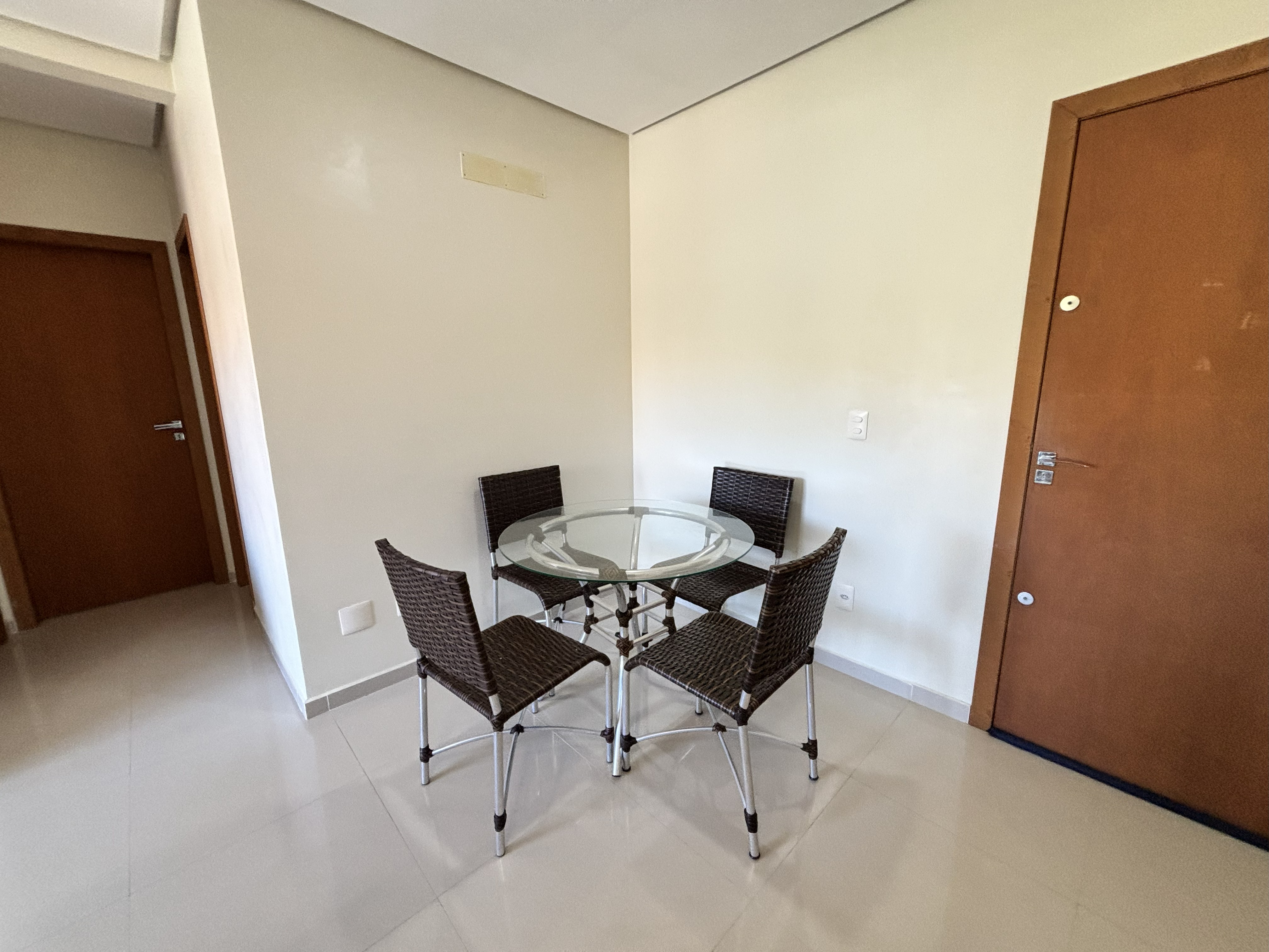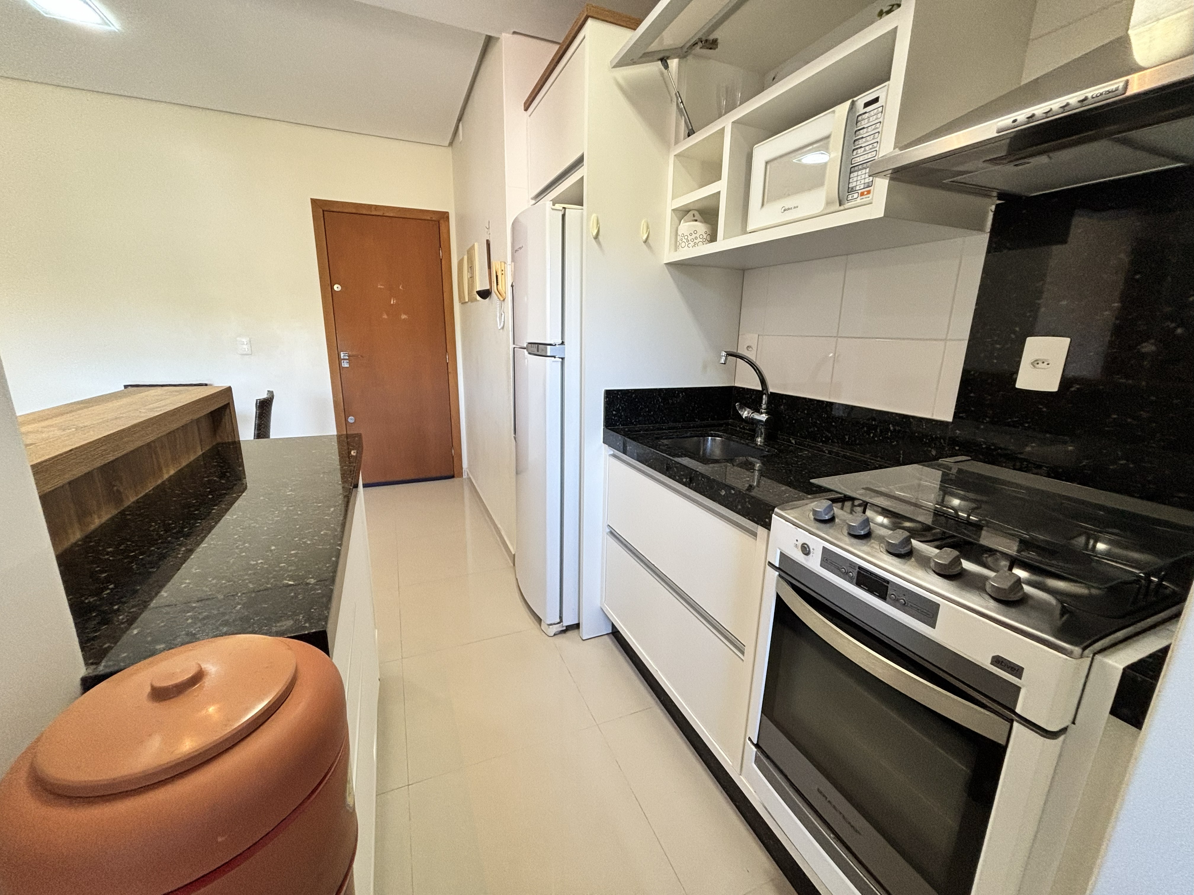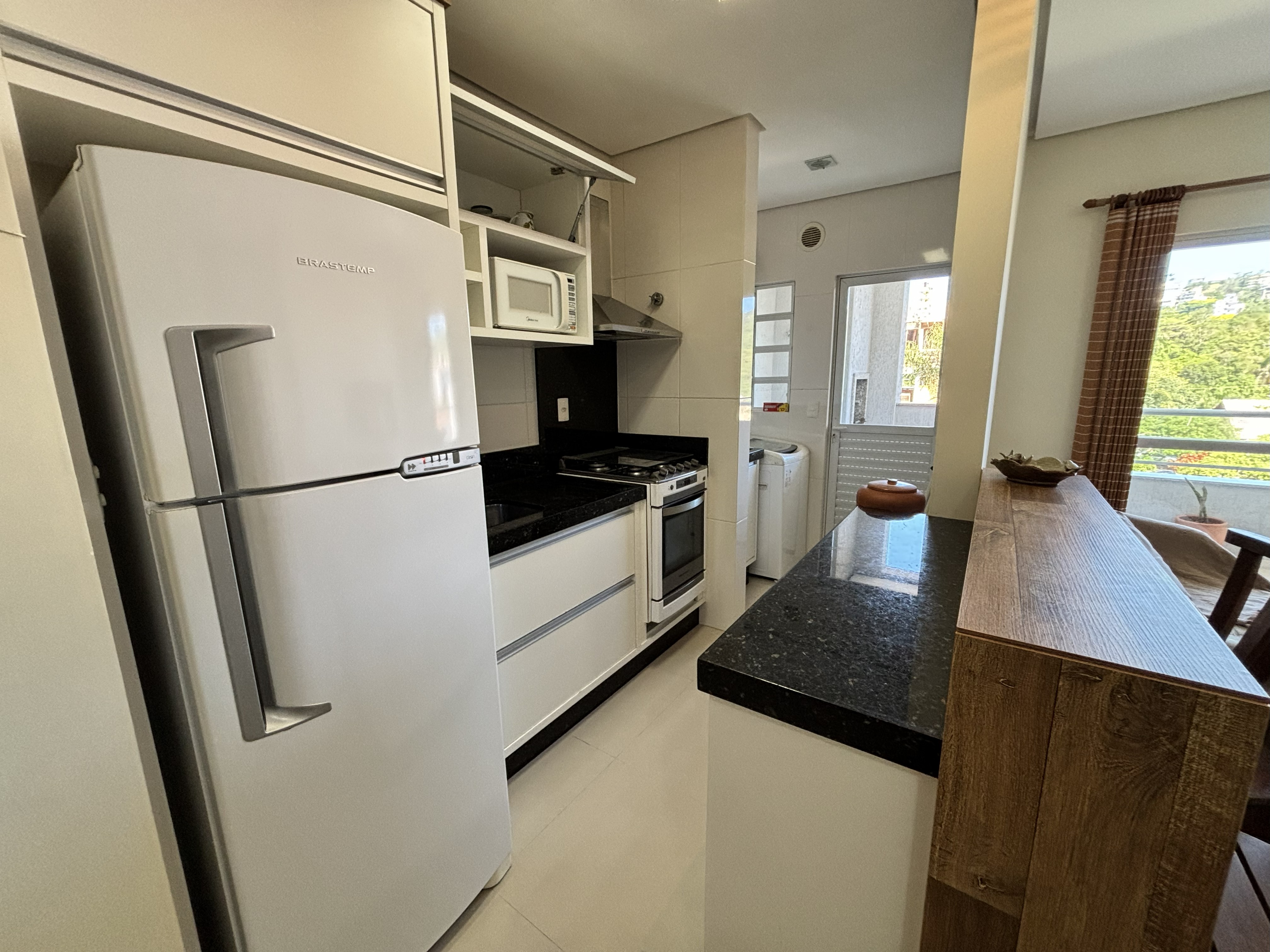 Cozinha equipada com geladeira, fogão, com micro-ondas e demais utensílios básicos;