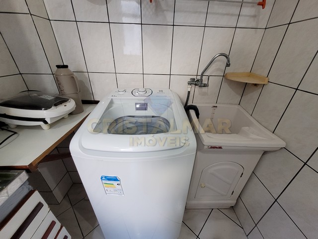 Ãrea de serviço com máquina de lavar roupas e tanque.