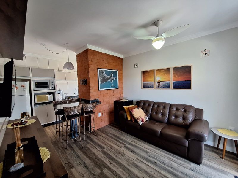 Descrição: Apartamento de frente no 2º piso, edifÃcio com escadas, localizado a 300 metros do mar em Bombas. |