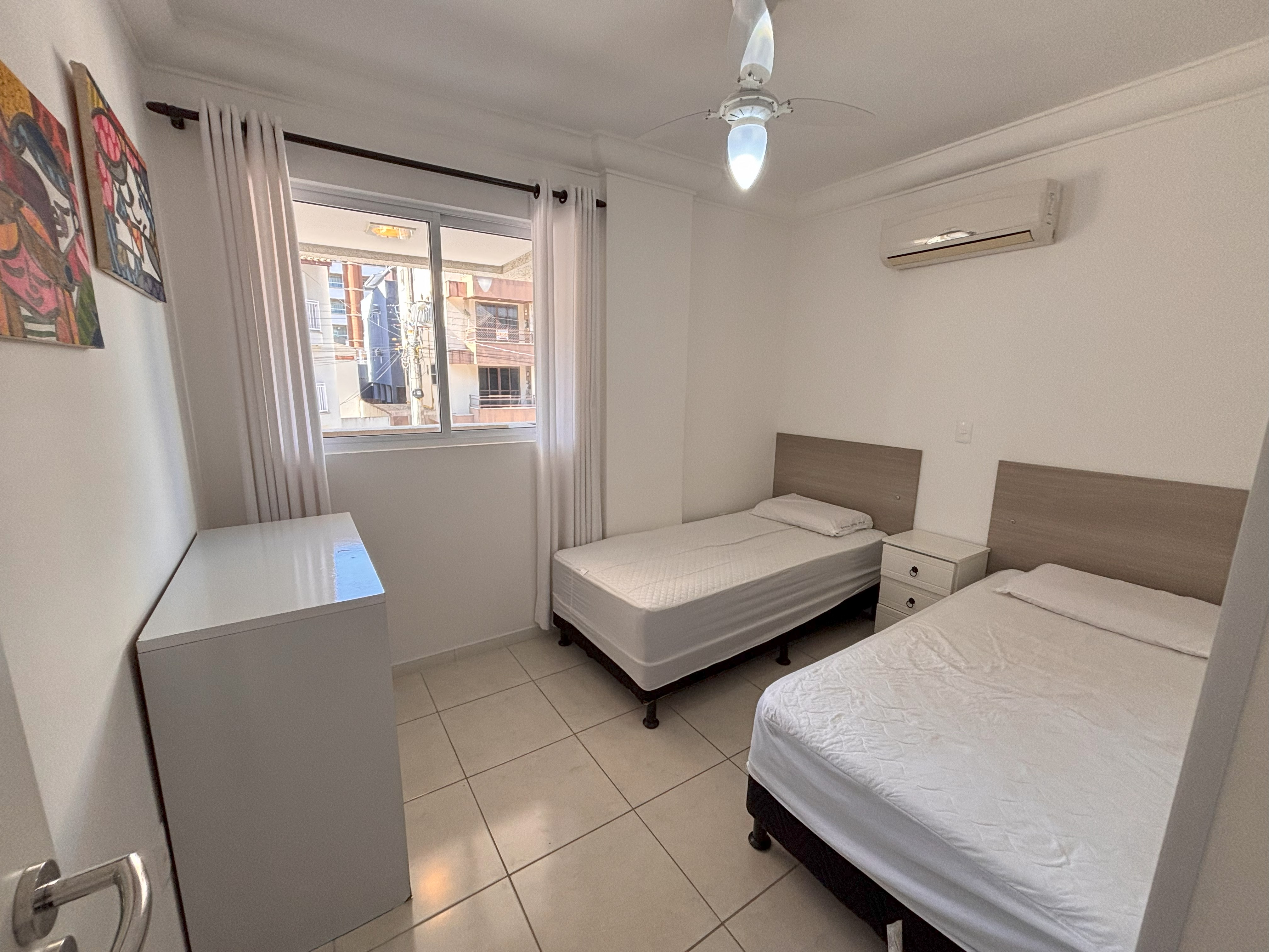 1 Dormitório com 2 camas de solteiro + 1 colchão extra de solteiro, roupeiro e ar condicionado split;