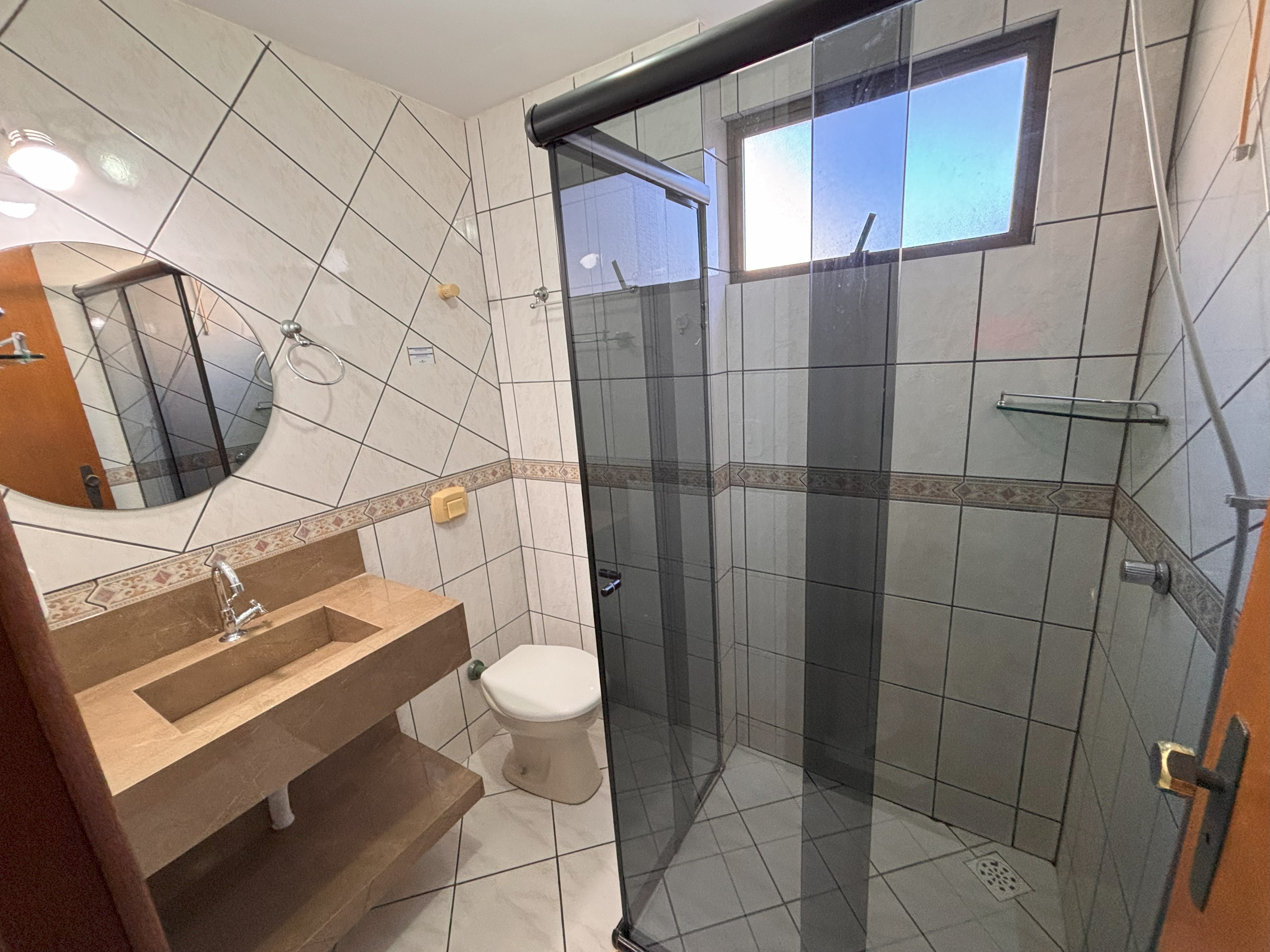 01 suíte com cama de casal, cama queen, roupeiro e ar split