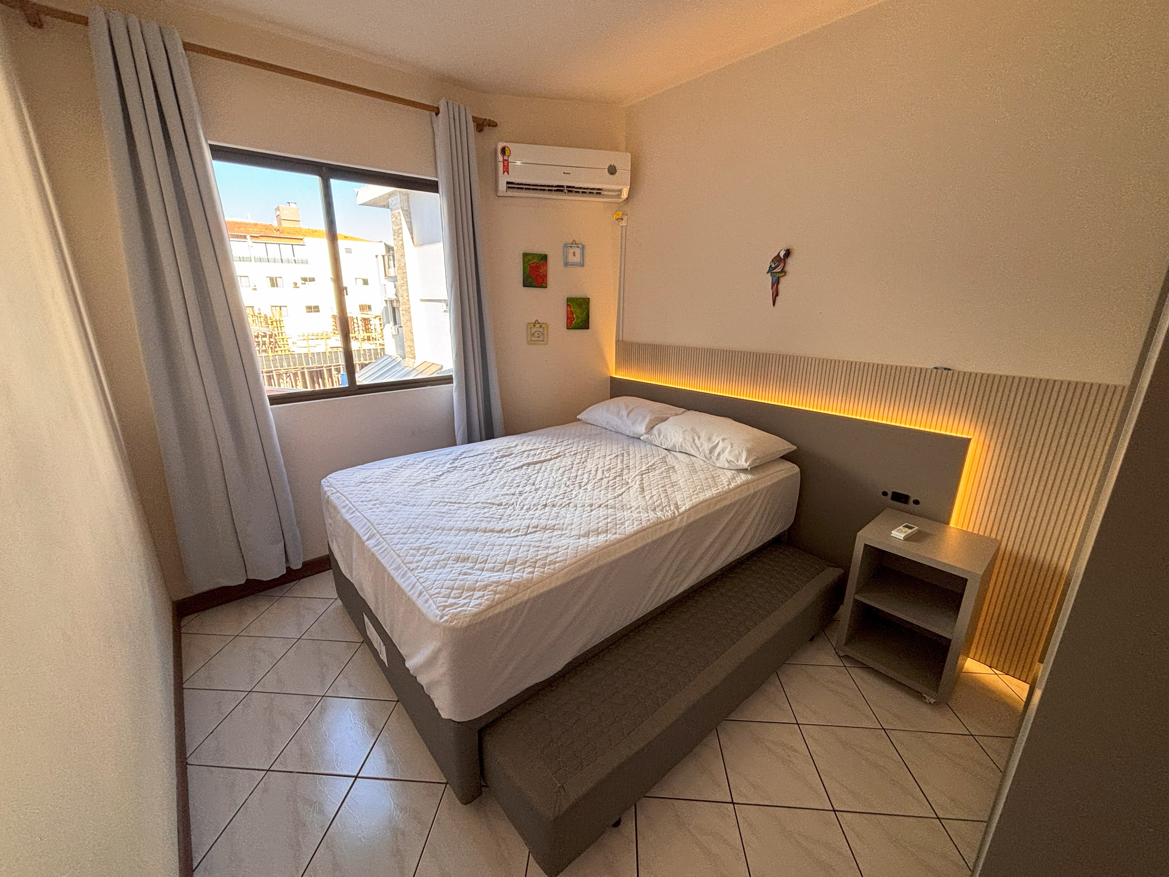 01 dormitório com 1 cama casal + auxiliar, roupeiro e ar split